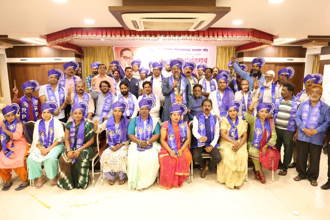 रिपब्लिकन युवा मोर्चा व महाविकास आघाडी यांच्या संयुक्त विद्यमाने आज नवयुग बँक्वेट हॉल या ठिकाणी आंबेडकरी कार्यकर्ता मेळावा आयोजित करण्यात आला होता. याप्रसंगी सर्वांनी निळे फेटे परिधान केले होते. रमेश बागवे यांनादेखील निळा फेटा परिधान करून सन्मान करण्यात आला. सदर मेळाव्यात मार्गदर्शन करताना ज्येष्ठ आंबेडकरी नेते तथा राष्ट्रवादी काँग्रेस शरदचंद्र पवार पक्षाचे नेते जयदेव गायकवाड यांनी ” जात्यांध शक्तीला पराभूत करण्यासाठी बागवे यांना सर्व ताकतीने निवडून देण्याचे आवाहन केले.