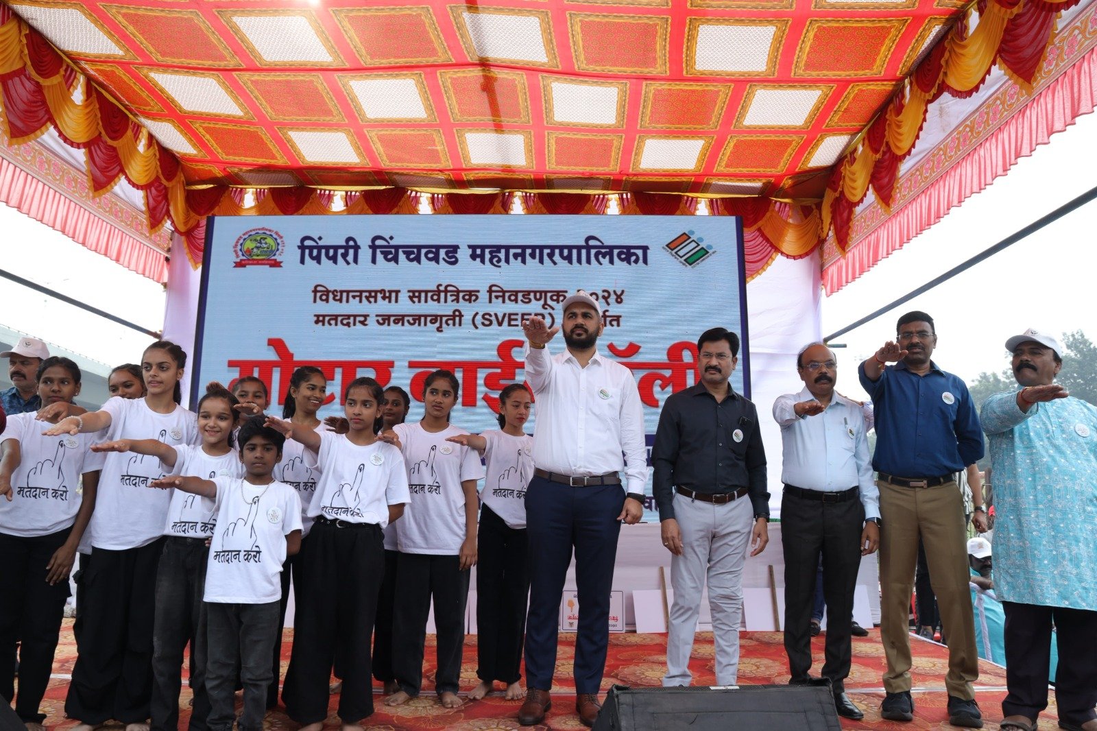 या रॅलीचा निगडी येथील भक्ती शक्ती चौकात आयुक्त श्री.सिंह यांच्या हस्ते हिरवा झेंडा दाखवून प्रारंभ करण्यात आला. यावेळी अतिरिक्त आयुक्त तथा स्वीप नोडल विजयकुमार खोराटे, उपआयुक्त अण्णा बोदडे, सहायक आयुक्त अविनाश शिंदे, राजीव घुले, सुरक्षा अधिकारी प्रमोद निकम, महापालिकेचे कर्मचारी, पोलीस प्रशासनाचे अधिकारी कर्मचारी, युथ आयकॉन उपक्रमातील स्पर्धक यांच्यासह विविध भागातून आलेले सुमारे ३५० पेक्षा अधिक बाईक रायडर्स आणि नागरिक मोठ्या संख्येने उपस्थित होते. यावेळी नागरिकांना मतदानाची शपथ देण्यात आली.