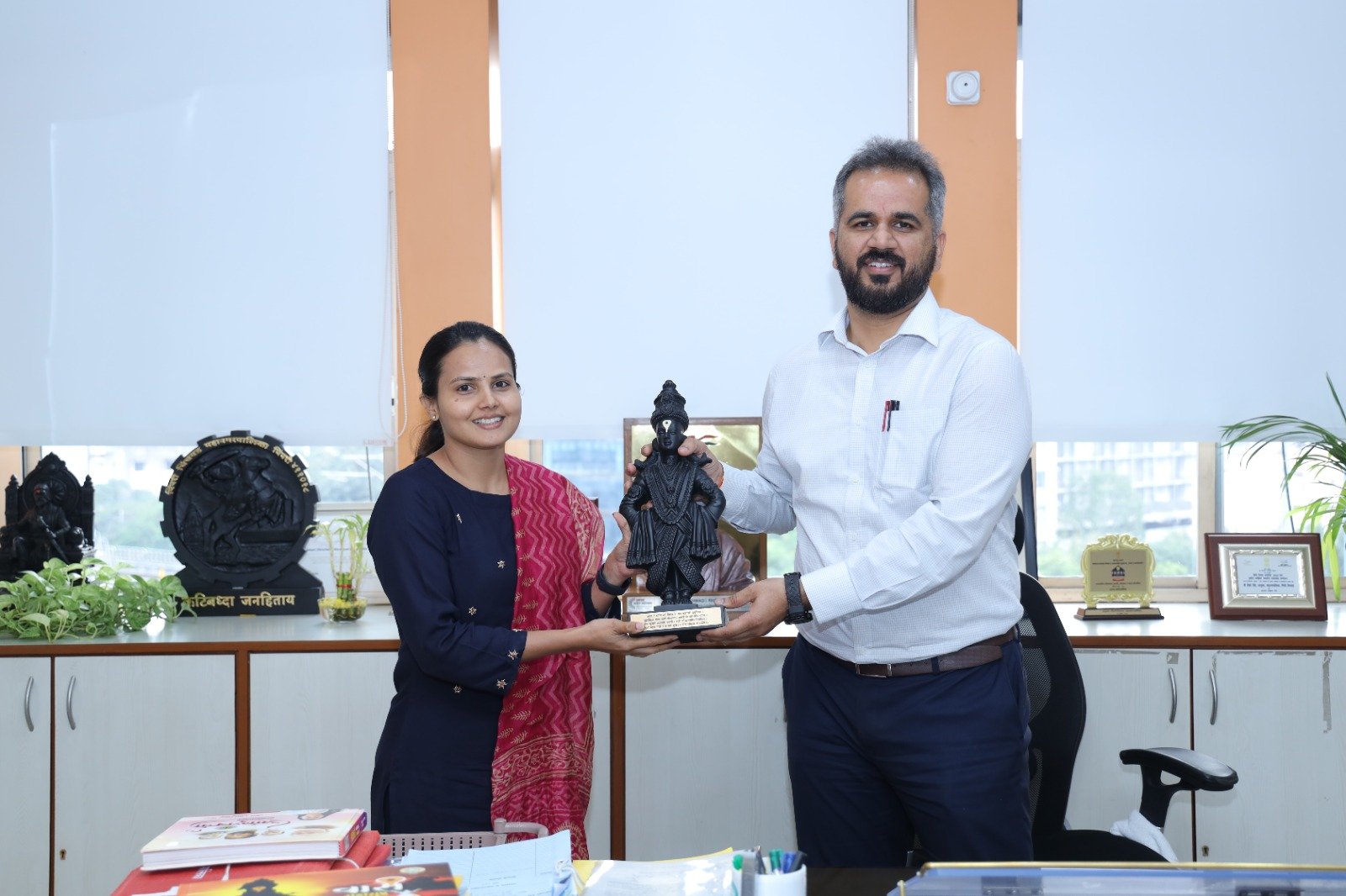 महानगरपालिकेच्या वतीने बांधण्यात येत असलेल्या नव्या प्रशासकीय इमारतीच्ची आढावा बैठक महापालिका आयुक्त तथा प्रशासक शेखर सिंह यांच्या प्रमुख उपस्थितीत माजी महापौर दिवंगत मधुकर पवळे सभागृहात पार पडली. या बैठकीत देखील श्रीमती आव्हाळे यांनी सहभाग घेऊन इमारतीची रचना जाणून घेतली.