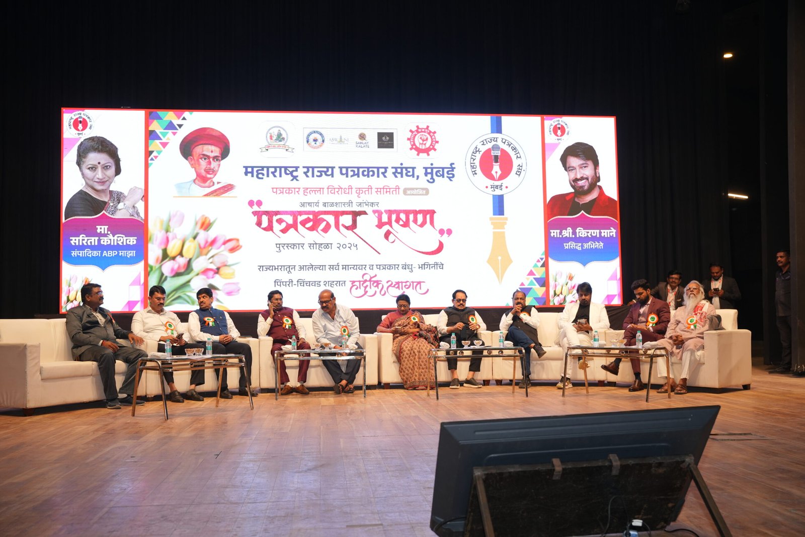 यावेळी सरिता कौशिक संपादिका , अभिनेता किरण माने, पद्मश्री गिरीश प्रभुणे, आमदार अमित गोरखे, सचिन जवळकोटे, उद्योजक संजय कलाटे, यशवंत भोसले, वसंत मुंडे प्रदेशाध्यक्ष, विश्वासराव आरोटे सरचिटणीस, संजय भोकरे संघटक, इरफान भाई सय्यद शिवसेना उपनेते, वैभव विधाटे, नितीन शिंदे प्रदेश उपाध्यक्ष , अतुल क्षीरसागर शहराध्यक्ष, पराग कुंकूलोळ माजी शहराध्यक्ष, गोविंद वाकडे प्रदेशाध्यक्ष पत्रकार हल्ला विरोधी कृती समिती,मनीषा थोरात महिला शहर अध्यक्षा