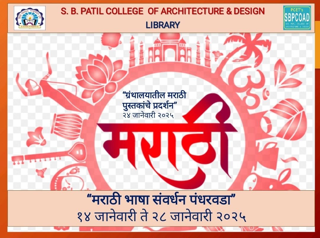 पिंपरी चिंचवड एज्युकेशन ट्रस्ट (पीसीईटी) संचालित एस. बी. पाटील कॉलेज ऑफ आर्किटेक्चर अँड डिझाइनमध्ये, १ जानेवारी ते २८ जानेवारी या कालावधीत “वाचन संकल्प महाराष्ट्राचा व मराठी भाषा संवर्धन पंधरवडा” साजरा करण्यात आला. विद्यार्थ्यांमध्ये वाचन संस्कृती रुजविणे व मराठी भाषेच्या संवर्धनासाठी जागरूकता निर्माण करणे आणि त्यास प्रोत्साहन देण्यासाठी या उपक्रमाचे आयोजन करण्यात आले होते.
