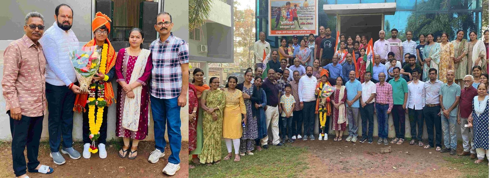 यावेळी सोसायटी धारकांच्या उपस्थितीत भाविकाचा नागरिक सत्कार करण्यात आला. यावेळी भाविकाचे आई-वडील, मनोजकुमार अहिरे तसेच तीचे प्रशिक्षक संजय हाडके सर आणि सोसायटीतील आजी-माजी पदाधिकारी, सभासद, महिलावर्ग मोठ्या संख्येने उपस्थित होता.