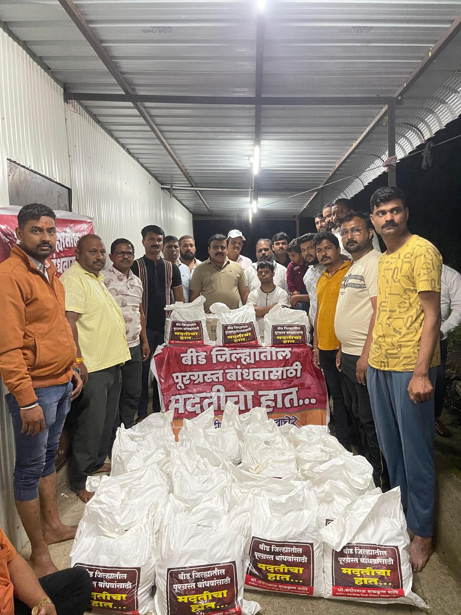 संदीप वाघेरे यांच्या पुढाकाराने बीड जिल्ह्यातील आहेर चिंचोली, शेळके वस्ती, देवडे वस्ती, खामगाव, भावले वस्ती, दिंडे वस्ती, हिरापूर या पूरग्रस्त गावांमध्ये २५० किराणा किटचे वाटप करण्यात आले. तसेच सोलापूर जिल्यातील माढा तालुक्यातील तहसीलदार कार्यालयाच्या सहकार्यातून २५० किटचे आज वाटप करण्यात आले. या किटमध्ये गव्हाचे पीठ,तांदूळ,तुरडाळ,तेल,मसाले, साखर,लहान मुलांसाठी बिस्किटे तसेच खाऊचे पदार्थ व इत्यादी जीवनावश्यक वस्तूंचा समावेश होता, ज्यामुळे या गावातील नागरिकांना मोठा दिलासा मिळाला.याचबरोबर, रामनगर येथील ‘स्नेह सावली’ अनाथ आश्रमातील 20 विद्यार्थी आणि 15 वृद्ध नागरिकांना जीवनावश्यक वस्तूंसह रोख स्वरूपात मदत करण्यात आली.