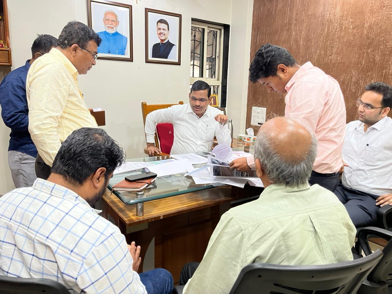 चिंचवड मतदार संघातील पिंपळे गुरव येथील कार्यालयात आमदार शंकर जगताप यांनी राष्ट्रीय महामार्ग प्राधिकरण अधिकाऱ्यांसमवेत महत्त्वाची आढावा बैठक घेतली. यावेळी वाकड, पुनावळे, ताथवडे, मामुर्डी, रावेत आणि विकासनगर या भागातील सेवा रस्त्यांच्या कामांना गती देण्याचे निर्देश यावेळी आमदार जगताप यांनी दिले. यावेळी राष्ट्रीय महामार्ग प्राधिकरणाचे प्रकल्प संचालक संजय कदम, तांत्रिक व्यवस्थापक अंकित यादव, कार्यकारी अभियंता सुभाष घंटे, समन्वयक विनोद पाटील, तसेच हरिंद्र यादव आदी उपस्थित होते.