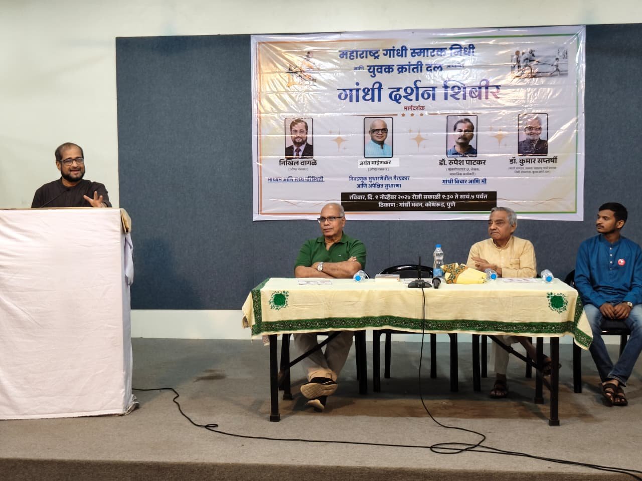 महाराष्ट्र गांधी स्मारक निधी आणि युवक क्रांती दल यांनी गांधी भवन, कोथरूड, पुणे येथे रविवारी २५ वे ‘गांधी दर्शन शिबिर संपन्न झाले. यावेळी ‘माध्यम आणि सद्यपरिस्थिती’ या विषयावर ज्येष्ठ पत्रकार निखिल वागळे यांनी आपले विचार मांडले.