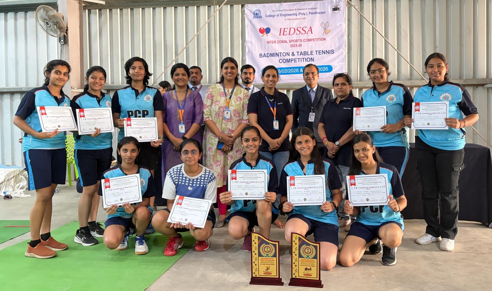 महाराष्ट्र राज्य तंत्रशिक्षण आंतर पदविका विद्यार्थी स्पोर्ट्स असोसिएशन यांनी स्वेरी कॉलेज ऑफ इंजीनियरिंग, पंढरपूर येथे आयोजित केलेल्या डी – १ झोनल टेबल टेनिस स्पर्धेत मुंबई येथील विद्यालंकार पॉलिटेक्निक मुलींच्या संघाने पिंपरी चिंचवड पॉलिटेक्निक (पीसीपी) मधील मुलींच्या संघावर अंतिम लढतीत विजय मिळविला.